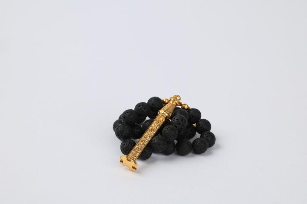 Expertly crafted from volcanic lava stone and brass plated in gold or silver, it combines the strength of natural materials with the elegance of fine details.