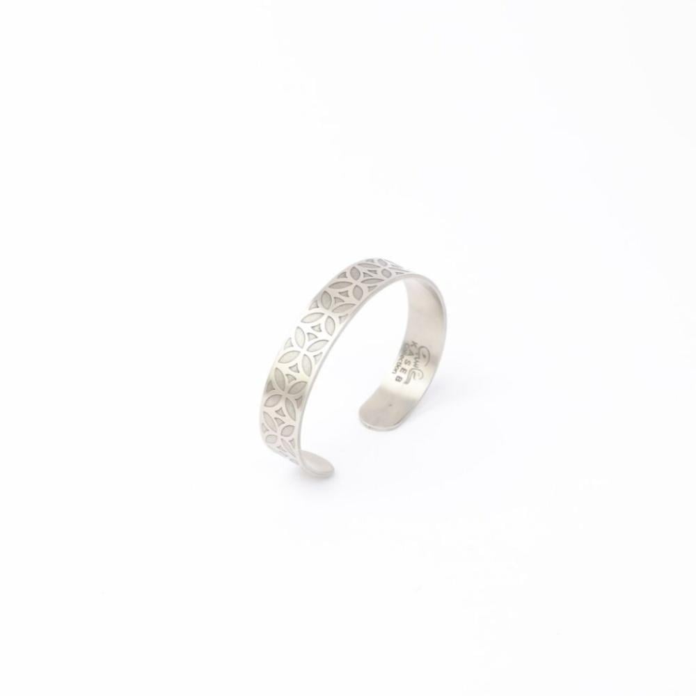 أسوارة أنيقة مصنوعة من الستيل بتصميم يعكس مزيجًا متناغمًا بين الحداثة والأصالة. زُينت بنقوش مستوحاة من فنون الجص الحساوي التقليدية، لتجسد في تفاصيلها عمق التراث وجمال الحرف اليدوية القديمة. قطعة عصرية تحمل لمسة تراثية فريدة، تضفي على معصمك تميزًا وأناقة متفردة تجعلها خيارًا مثاليًا لإكمال إطلالتك بروح أصيلة معاصرة. المواصفات: الخامة: معدن اللون: فضي تنفيذ: مساوَى أحمد محمد كاسب