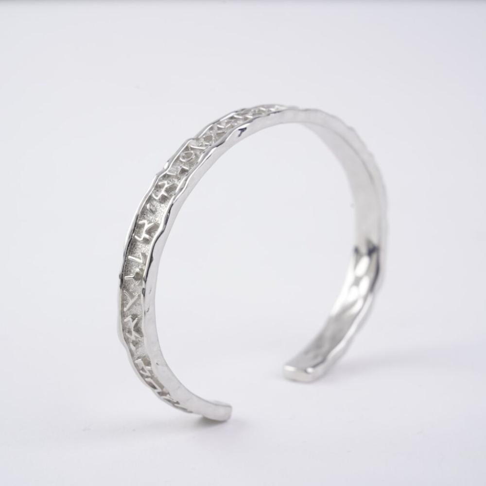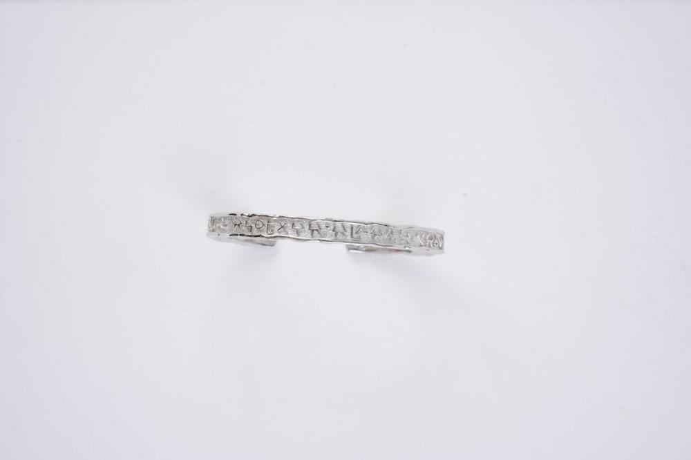 تُجسد أسوارة "حياه" جوهر الاستمرارية والثقافة، مستوحاة من قوة الكتابة وأثرها في حفظ التراث عبر الأجيال. يزينها نقش بالحروف الدادانية، إحدى أقدم أنظمة الكتابة في الجزيرة العربية، يتضمن بيت الشعر: "وأنا نحب الحياة إذا ما استطعنا إليها سبيلا" لتعكس رسالة حب الحياة ودور الكتابة في إبقاء الحضارات حية في ذاكرة الإنسانية. المواصفات: الخامة : معدن اللون : ذهبي تنفيذ: حنان محمد البلوي