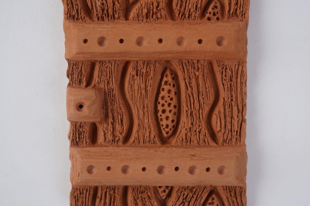 باب فخاري تراثي مُستوحى من أبواب نجد القديمة التي كانت تُزيّن البيوت الطينية الأصيلة. يتميّز بنقوش دقيقة وحفر يدوي متقن يُبرز جمال العمارة النجدية وبساطتها. قطعة فنية تمثل رمزًا للهوية والتراث السعودي العريق.