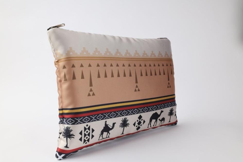 حقيبة لابتوب مميزة مزينة بنقوش مستوحاة من الدرعية التاريخية، لتجمع بين الأناقة العملية وروح الأصالة. تصميم فاخر يليق بمكانة الدرعية كرمز تاريخي وثقافي للمملكة.