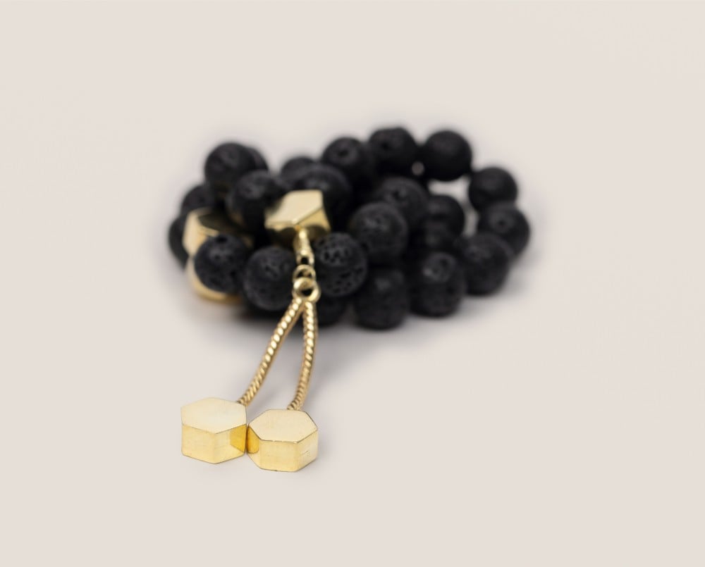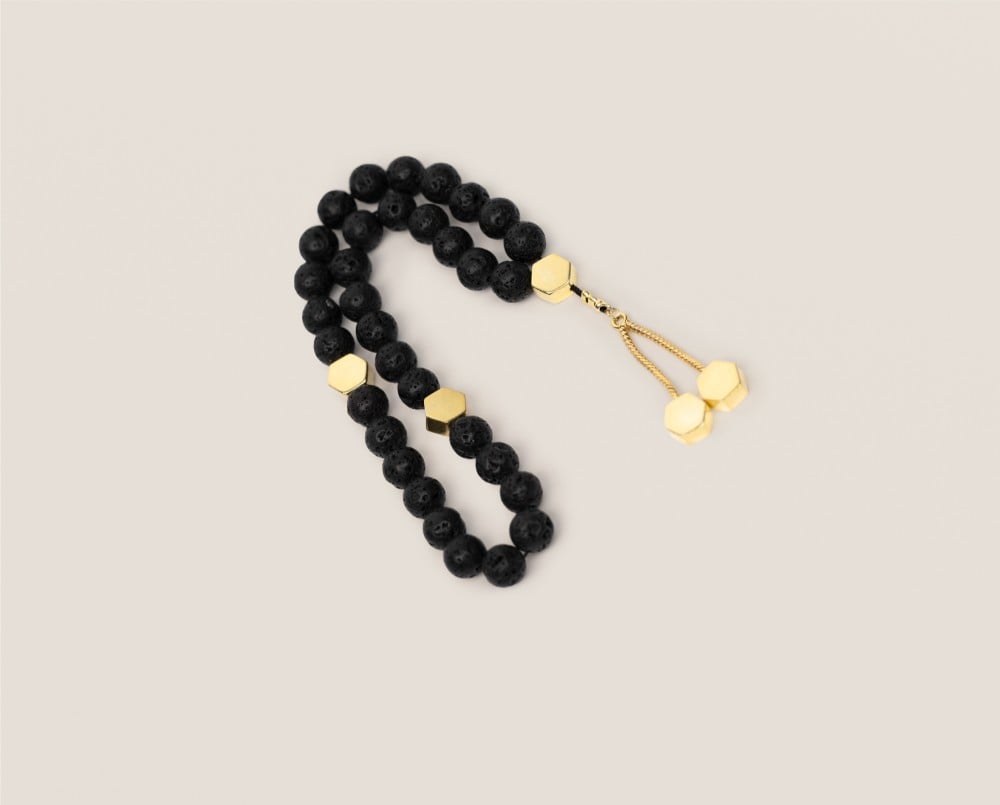 تأتي هذه السبحة مصنوعة بأيدٍ سعودية، من الأحجار البركانية الموجودة في أرض المدينة المنورة، والتي تسمح مساماتها بالاحتفاظ برائحة الطيب، فتبقى فوّاحة بشذى امتنانا أثناء التسبيح.