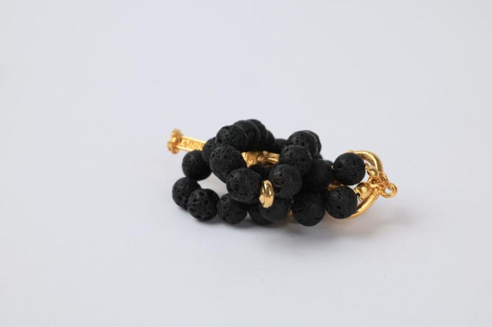 الخامة: حجر لافا بركاني + نحاس مطلي ذهب/فضة