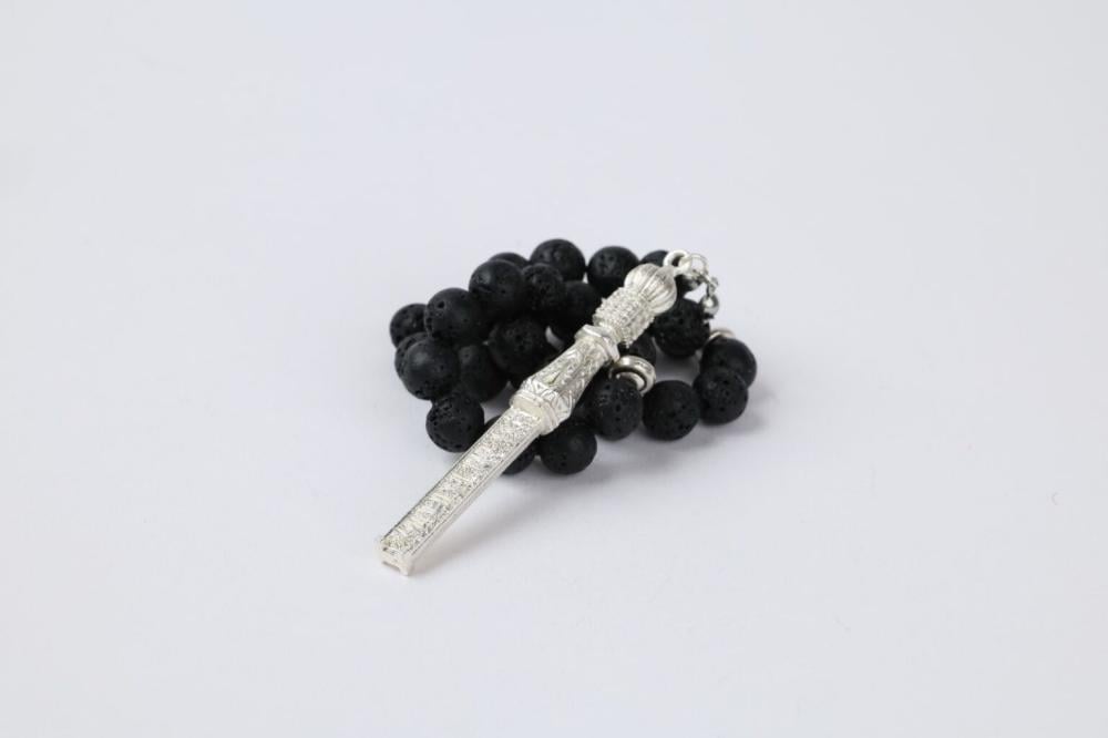 الخامة: حجر لافا بركاني + نحاس مطلي فضة