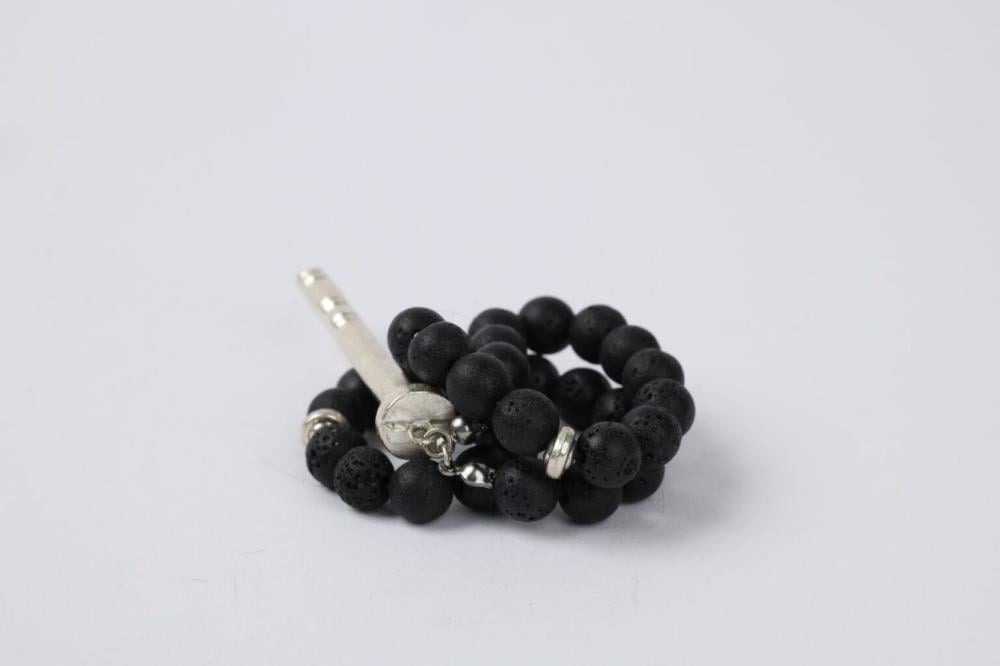الخامة: حجر لافا بركاني + نحاس مطلي فضة