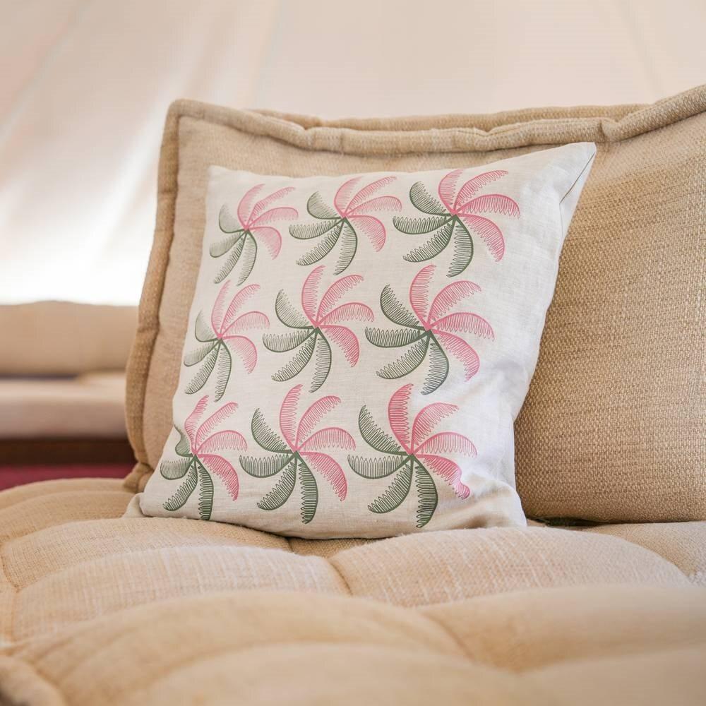 غطاء وسادة نَسج الواحة مستوحى من نخيل العلا مصنوع من الكتان الطبيعي بنقووش مطبوعة مستوحاة من سعف النخيل بوادي العلا. تضفي دفئًا وأناقة طبيعية على أي مساحة. نُفذت على يد حرفيين سعوديين يتقنون تحويل عناصر الطبيعة إلى لمسات فنية منزلية. المواصفات: الخامة: كتان طبيعي عالي الجودة اللون: بيج بنقوش خضراء مستوحاة من سعف النخيل اسم الحرفي: حرفييون مدرسة الديرة