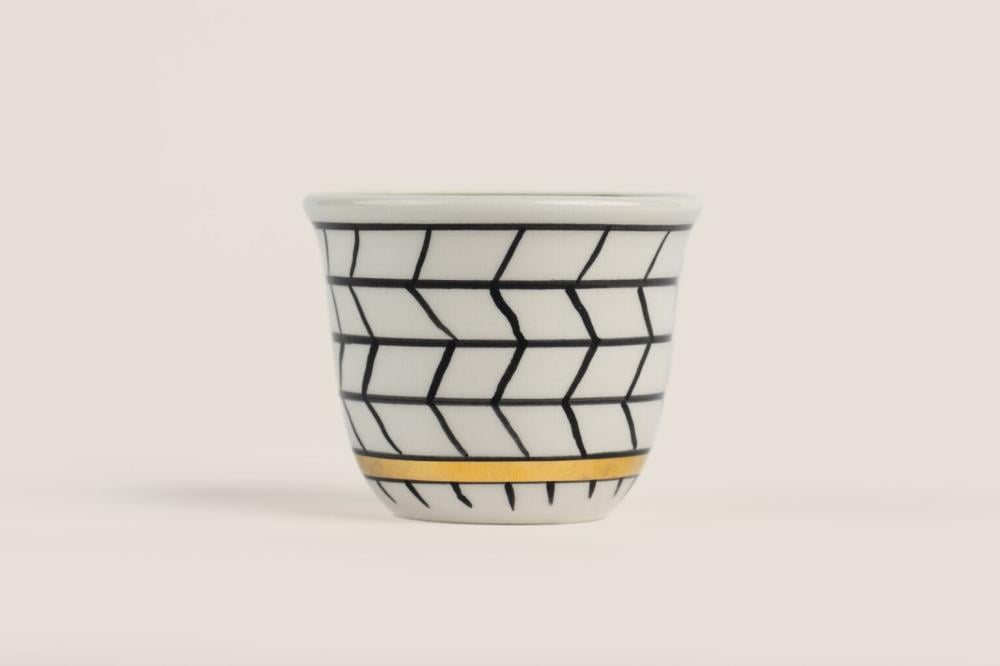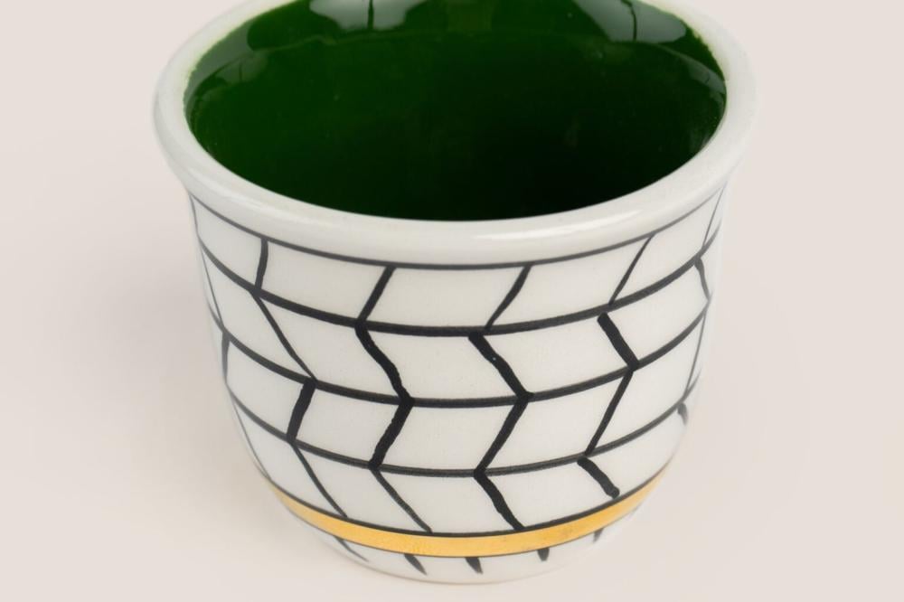 فناجين قهوة سعودية تينبض بالفن والتراث، مستوحاه من جماليات القط العسيري، أحد أبرز رموز الزخرفة الجنوبية في المملكة. يبرز اللون الأخضر في التصميم بلونه الغني، رمز الخير والنماء، ويُطعم بخطوط أنيقة من ماء الذهب عيار 18 لإضفاء لمسة فاخرة. ما يميز هذه القطعة حقًا هو أنها نفذت بإتقان على يد حرفيات سعوديات من ذوي الاحتياجات الخاصة، لتكون شاهدة على الإبداع والعزيمة. إنها أكثر من مجرد صحن... إنها لوحة فنية تحمل قصة. المواصفات: التنفيذ:حرفيات فنون التراث الخامة: سيراميك اللون: متعدد الألوان منتج عالي الجودة من أختيار شركة حرف السعودية.