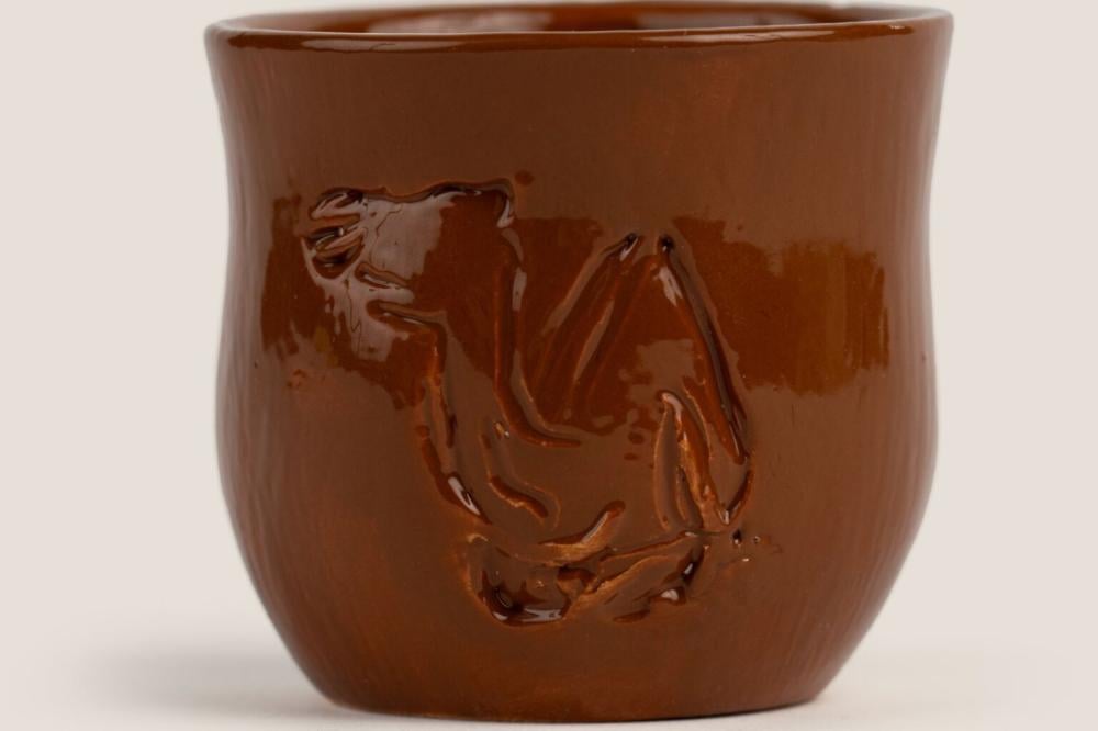 بأيدٍ سعودية ماهرة تتسم بالدقة والإتقان، صُنع فنجان الجمل يدويًا ليحمل روح الحرفة الأصيلة. يتميز بلونه البني الدافئ المستوحى من رمال الصحراء، ونقش بارز للجمل، رمز الصبر ورفيق الدرب في الثقافة العربية. من التشكيل إلى التلوين بالفرشاة، تمت كل خطوة بعناية على يد حرفيين سعوديين، ليكون مثاليًا لتقديم القهوة السعودية والقهوة المركزة بأسلوب يجمع بين التراث والأناقة.