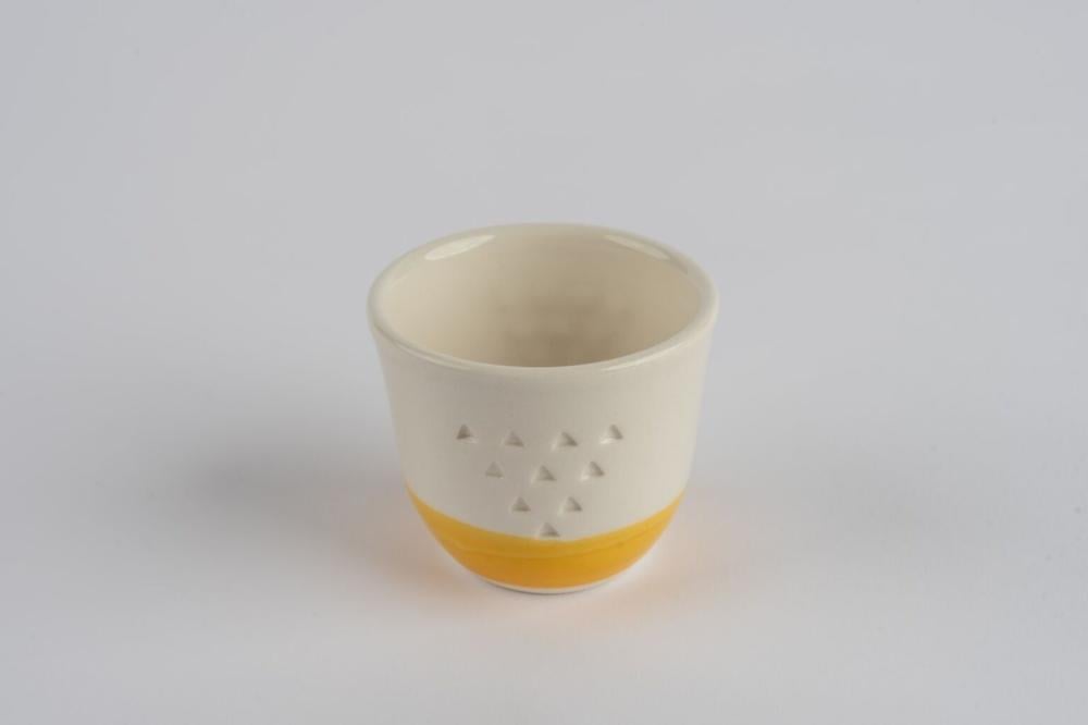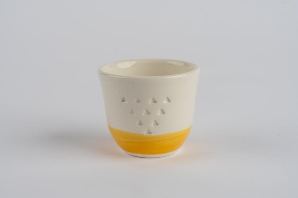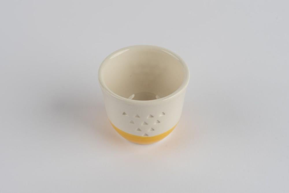 مستوحى من نقوش الأبواب النجدية التاريخية. تشكّل العمارة صورة من ثقافتنا، بتفاصيلها الهندسية التي تتميز بنقوشها الخاصة، نعتبرها جزءًا منا، وتعتبرنا أصلًا لها، فشرَّعنا أبوابنا لضيوفنا متباهين بإرثنا المعماري، وبكرمنا، وأول ما نكرم به ضيوفنا هو القهوة السعودية. تأتي هذه المجموعة لتتباهى بتفاصيل من إرثنا وكرمنا، حيث يتزيّن كل فنجان بنقوش من الأبواب النجدية حفرت عليه بأيدٍ سعودية، ويرمز كل لون أسفل الفنجان إلى طيف من الألوان الموجودة على أبواب نجد القديمة. وبينما يناغم كوب القهوة تفاصيلًا من الأبواب النجدية، فإن القاعدة المثلجة ترمز لعزيمتنا الراسخة لتطوير المستقبل، فعندما يوضع الكوب على القاعدة، ينسل اللون وكأنه يشع من خلال شفافيتها رابطًا بين الماضي والحاضر، حاملًا أصالة التراث لأحلام المستقبل. احتفوا بضيوفكم بفنجان قهوة سعودية أصيلة يرمز لحداثة المستقبل ويعكس أصالة كرمنا. العناصر: فنجان قهوة سعودية، قاعدة مثلّجة تعكس لون الفنجان. تصميم: عبير الربيعة تنفيذ: مروج الشاطري منتج عالي الجودة من شركة حرف السعودية.