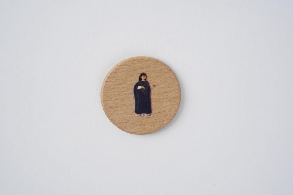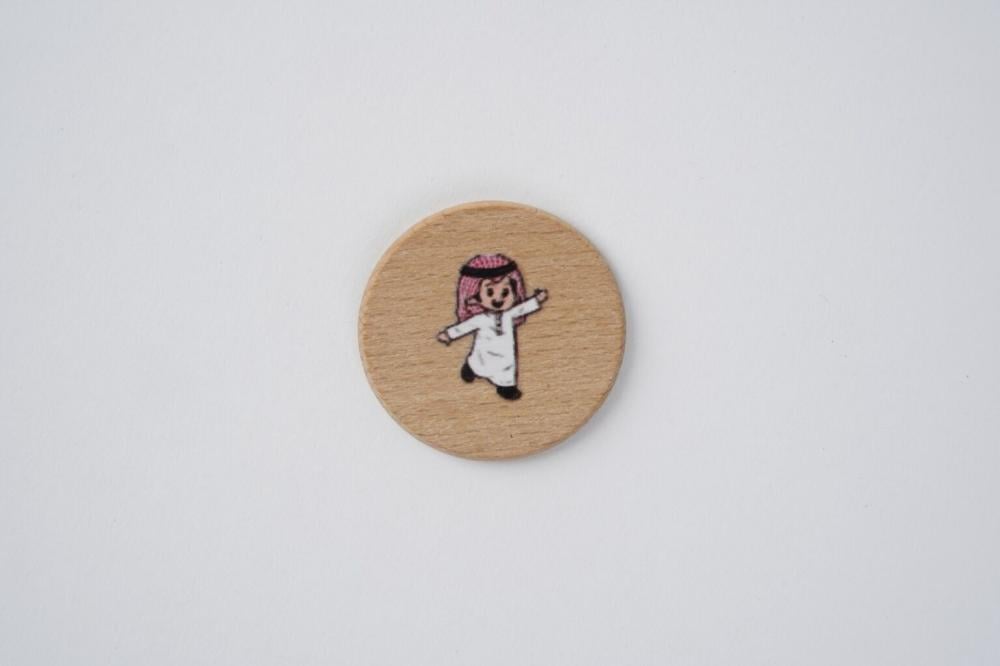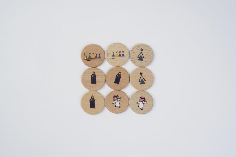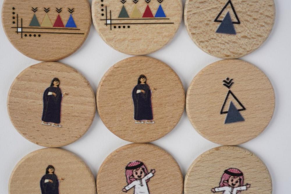 لعبة خشبية مصنوعة يدويًا، مستوحاة من فن القط العسيري، تعكس ألوان وثقافة جنوب المملكة العربية السعودية الساحرة.