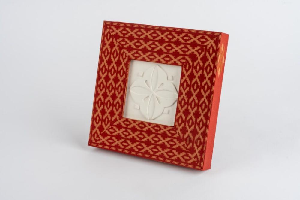 قطعة فنية تجمع بين البساطة والرمزية، تتكون من إطار مغطى بقماش مزخرف بنقوش مستوحاة من التراث السعودي، تتوسطه قطعة جبسية محفورة يدويًا بأشكال هندسية دقيقة. يمثل هذا المنتج اندماجًا بين الحرفة التقليدية والدقة المعاصرة في التصميم، من تنفيذ أيادٍ سعودية ماهرة. مثالي كقطعة ديكور تنقل روح الأصالة وتضيف لمسة ثقافية راقية للمكان.