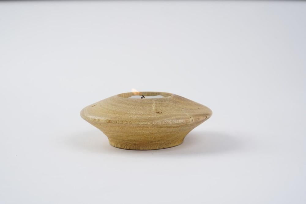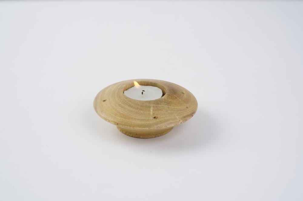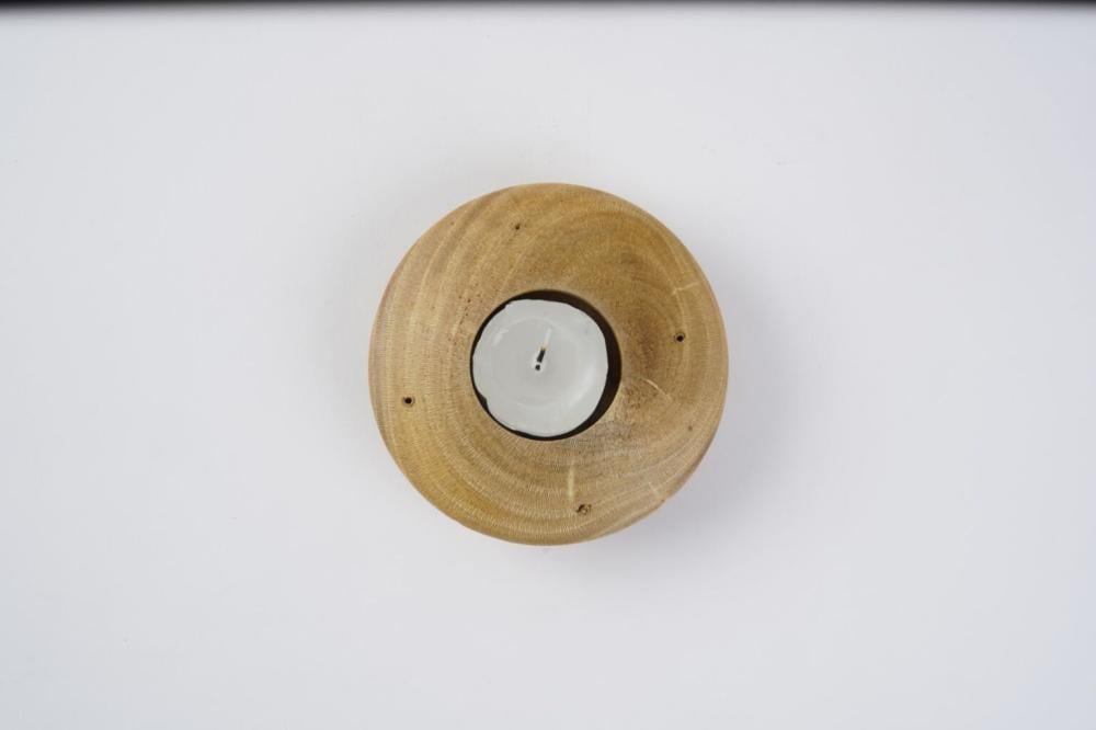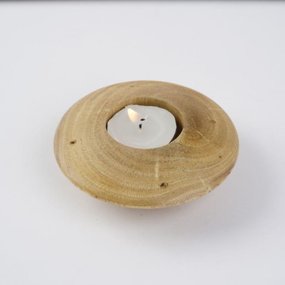 مجسم شمعة مصنوع يدويًا من خشب الزيتون الطبيعي، يبرز بجمال عروقه المتفردة ورائحته الدافئة. قطعة فنية تضفي حضورًا أنيقًا على ديكورك.
