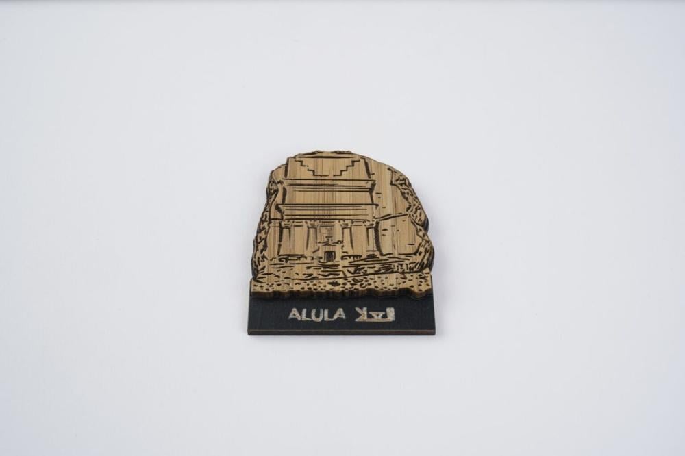 مغناطيس يجسد عظمة مدائن صالح بتفاصيل فنية تعكس العمق التاريخي للمملكة.