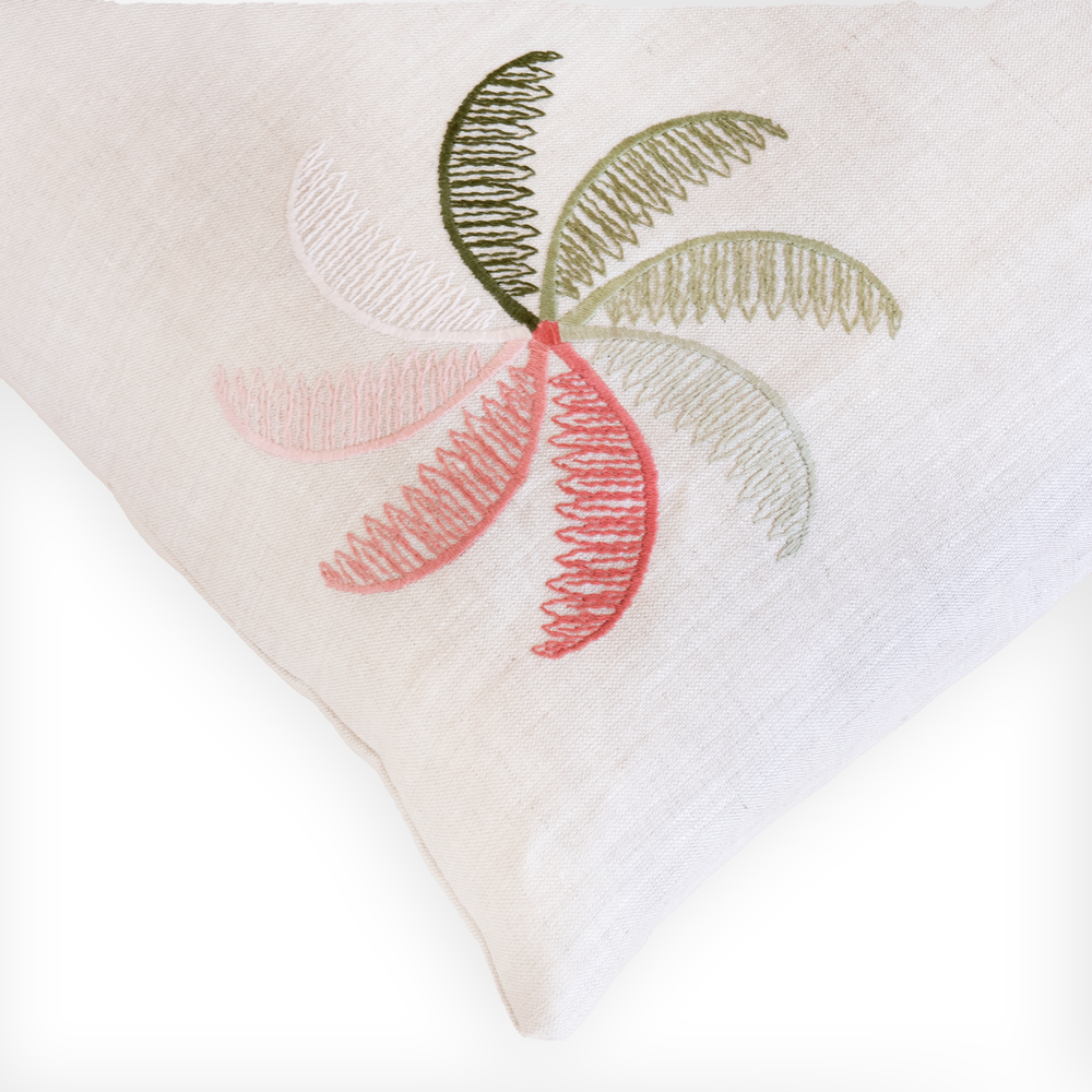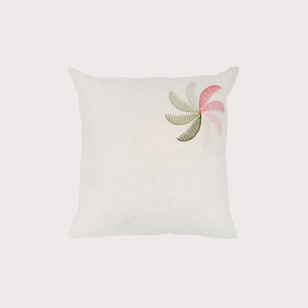غطاء وسادة أنيق مصنوع من الكتان ومطرز يدويًا بإتقان، استوحت نقوشه من سعف النخيل في واحة العلا ليمنح منزلك لمسة دافئة وأصيلة تجمع بين الراحة والجمال. صُنع بأيدي حرفيين سعوديين. المواصفات: الخامة: كتان اللون:طبيعي تنفيذ: حرفيين مدرسة الديرة