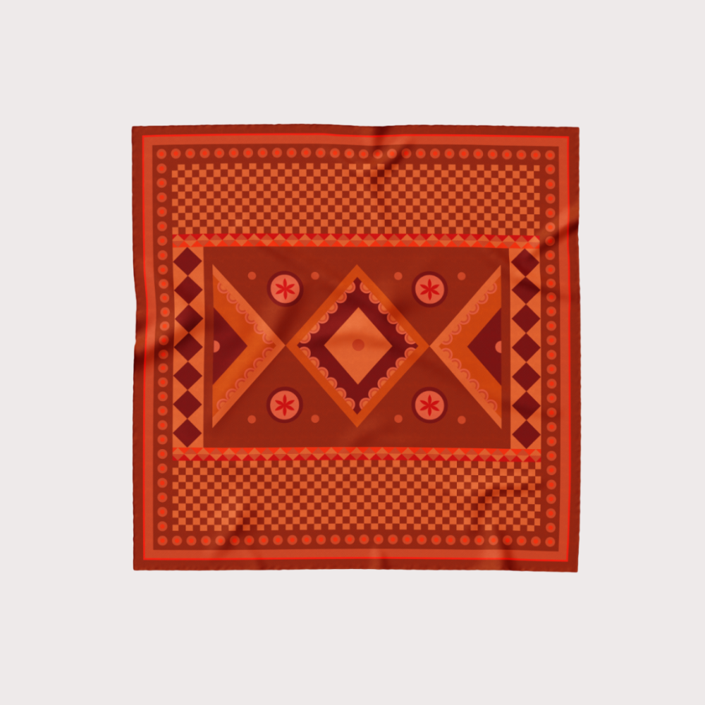 نُفذ بإتقان على يد حرفيين سعوديين، ليجمع بين الرقي والبساطة في آنٍ واحد. شال مربع من الحرير الفاخربزخارف نجديةوحواف ملفوفة يدويًا بعناية. تصميمه الناعم يجعله قطعة متعددة الاستخدام: حول الرقبة، كإكسسوار أنيق للحقائب، أو غطاء للرأس. المواصفات : اللون:أحمر خامة:قماش منتج عالي الجودة من اختيار شركة حرف السعودية