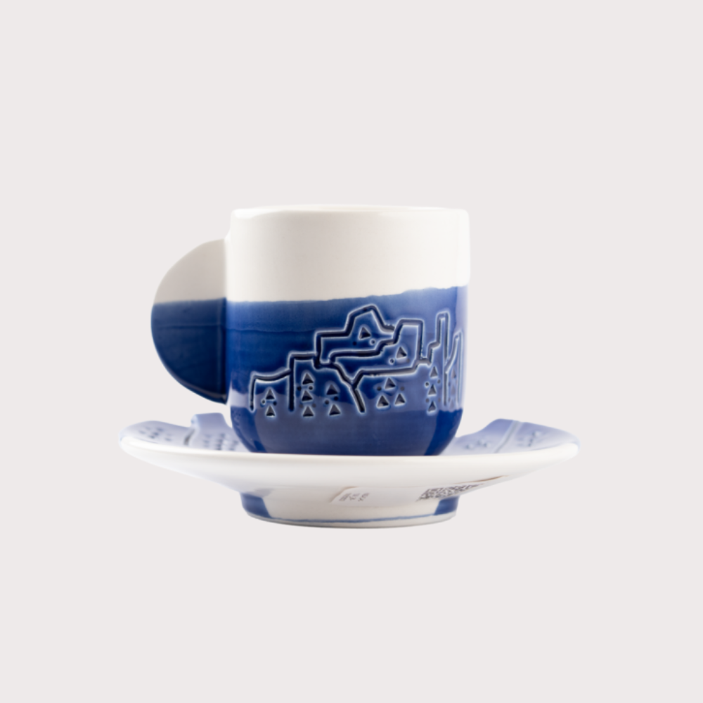 مجموعة أنيقة مكونة من كوب وطبق خزفي مصنوع يدويًا من الطين الأبيض، مزدان بنقوش مستوحاة من عمارة الدرعية التاريخية. يجمع بين الأصالة والتراث العريق مع لمسة عملية تناسب الضيافة اليومية. بسعة 220 مل ليمنحك تجربة قهوة أو شاي بطابع تراثي مميز. المواصفات: المادة: طين أبيض خزفي السعة: 220 مل القطع: كوب + طبق