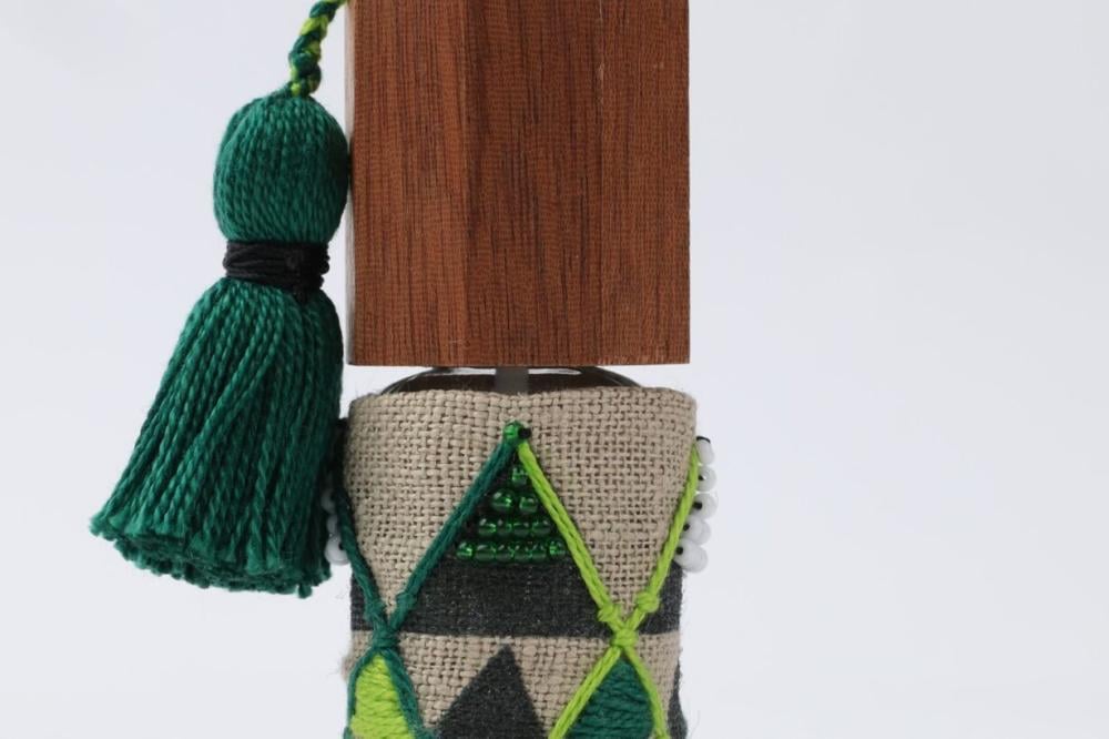A Najdi Tola inspired by traditional triangular patterns in architecture and Sadu weaving, crafted from luxurious mahogany wood with authentic prints and embroidery. Comes packaged in a full Tola size (12 grams).