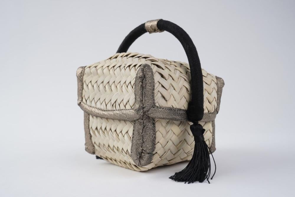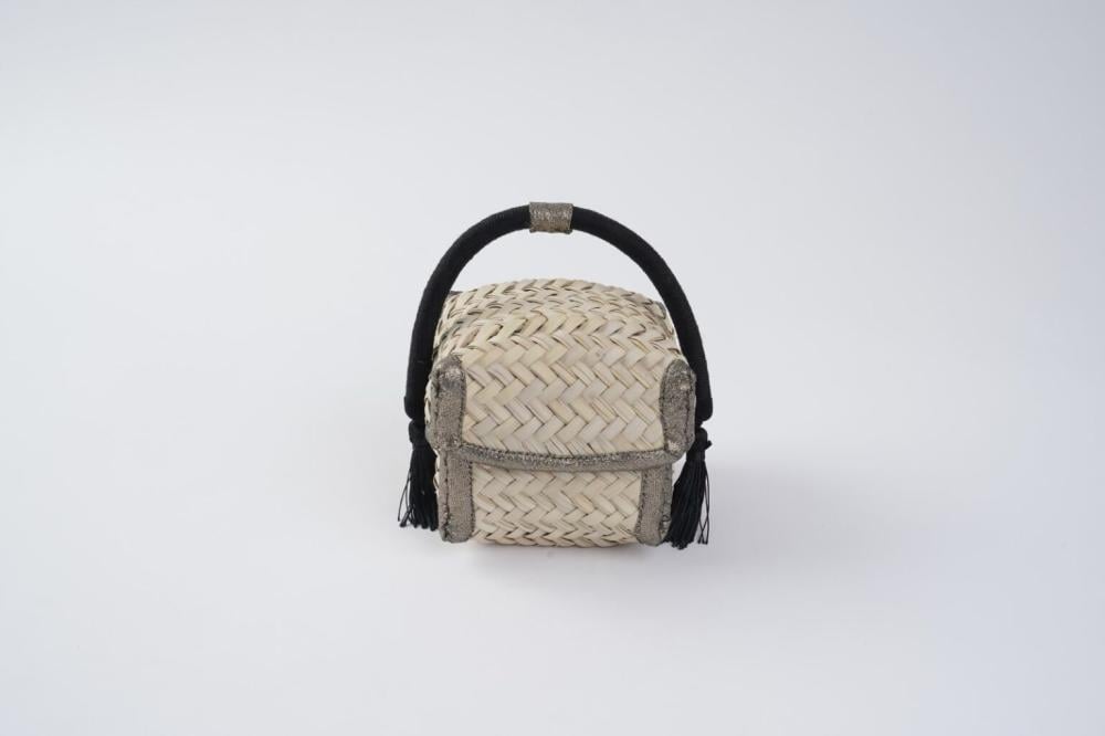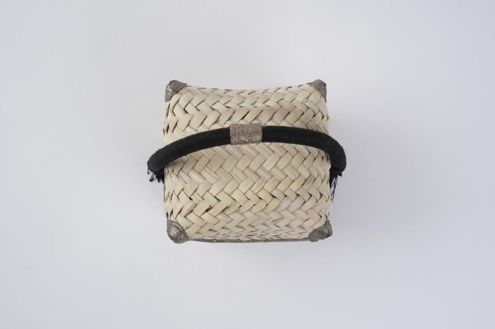 A luxurious heritage box crafted from natural palm fronds, accented with a black aqal that adds elegance and sophistication. Combining traditional symbolism with practical functionality, it brings an authentic Saudi touch to your home.