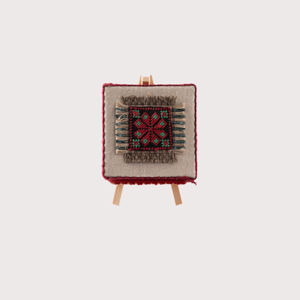 A canvas piece embroidered with authentic Sadu patterns inspired by Najd, adding a genuine Bedouin spirit to your home décor.