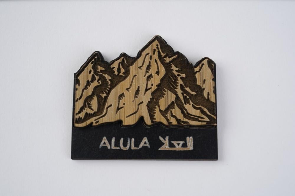 A magnet capturing the beauty of the enchanting Al-‘Ula mountains with a traditional-inspired design, serving as a memorable keepsake.